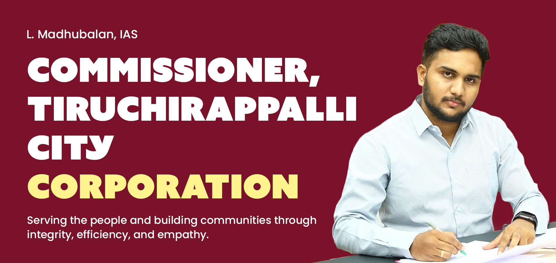 Currently serving as the Commissioner of Tiruchirappalli City Corporation, he has